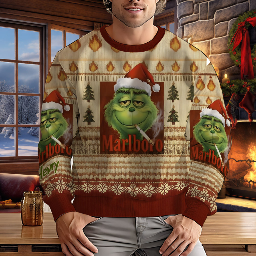 Film de Noël Green Monster Cigarette - Pull de Noël moche personnalisé