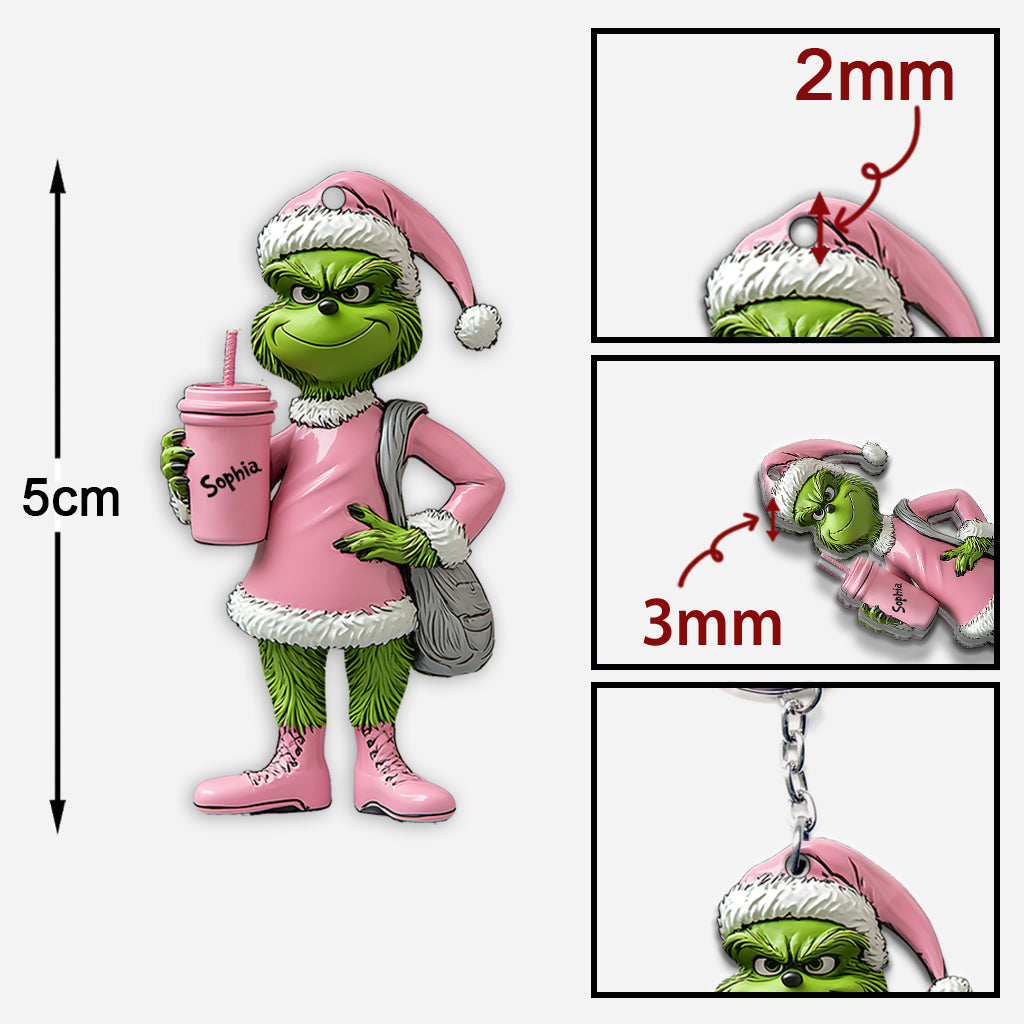Porte-clés étole de Noël personnalisé Grinchy Green Lady - Porte-clés étole de Noël