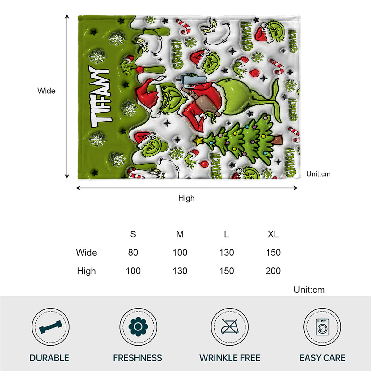Couverture personnalisée avec flocons de neige verts et prénom au choix