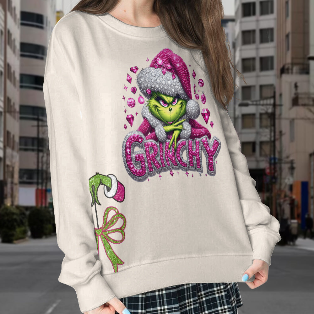 Joyeux Grinchmas - Sweat-shirt à ourlet fendu et étole de Noël personnalisée