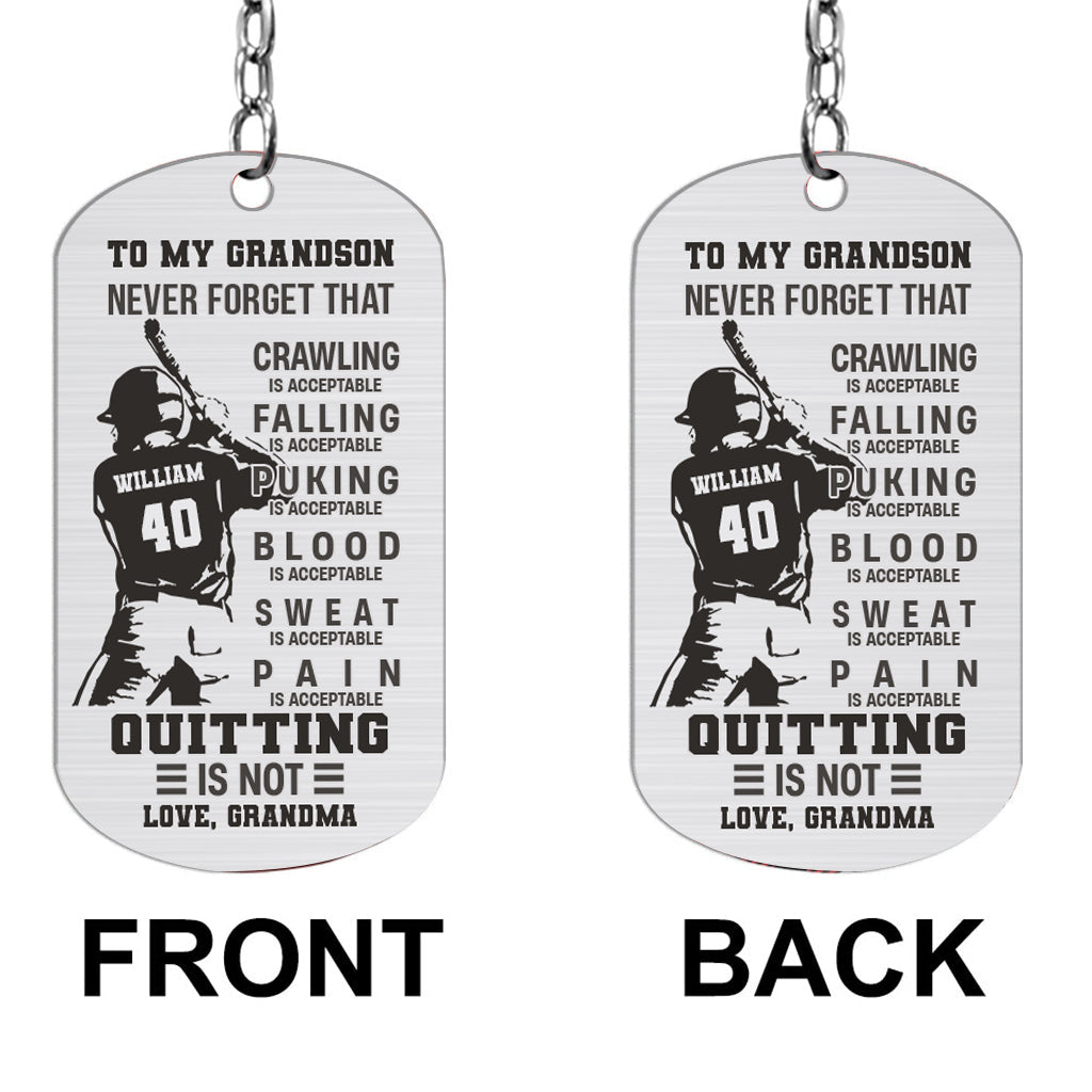 À mon fils : Ramper, c’est bien ! – Porte-clés personnalisé en acier inoxydable, cadeau de baseball pour fils, frère, petit-fils, papa
