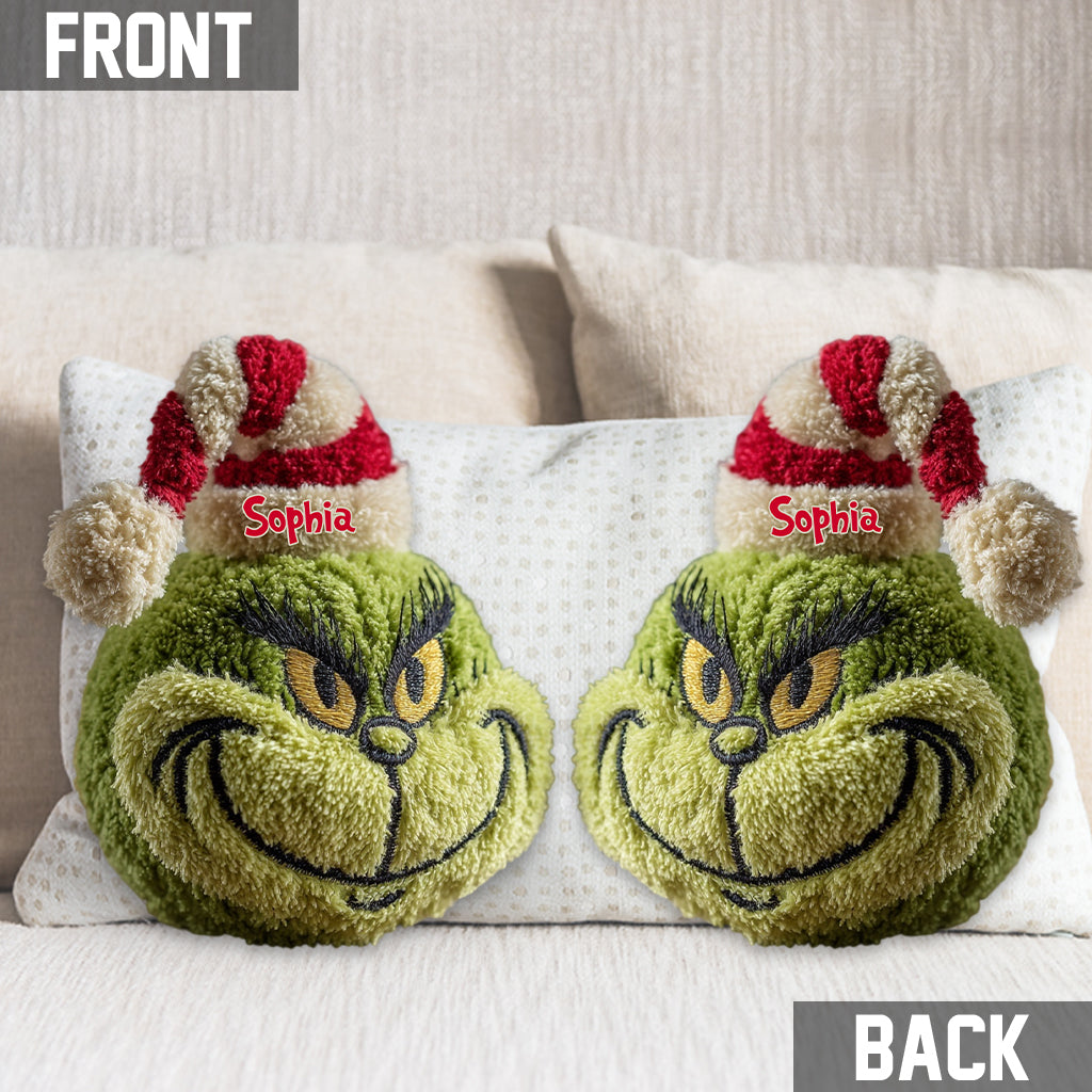Any Name Green Monster Christmas Gift - Personalized Stole Christmas Shaped Pillow