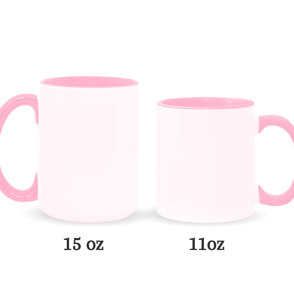 - High quality ceramic mug with two-tone rim, interior, & handle