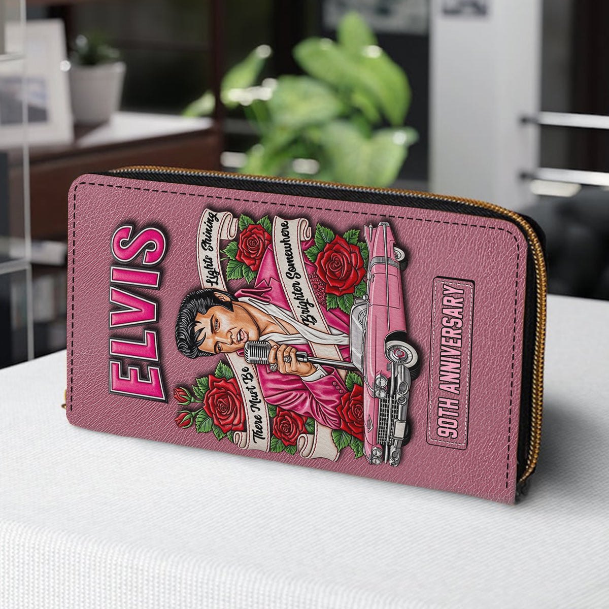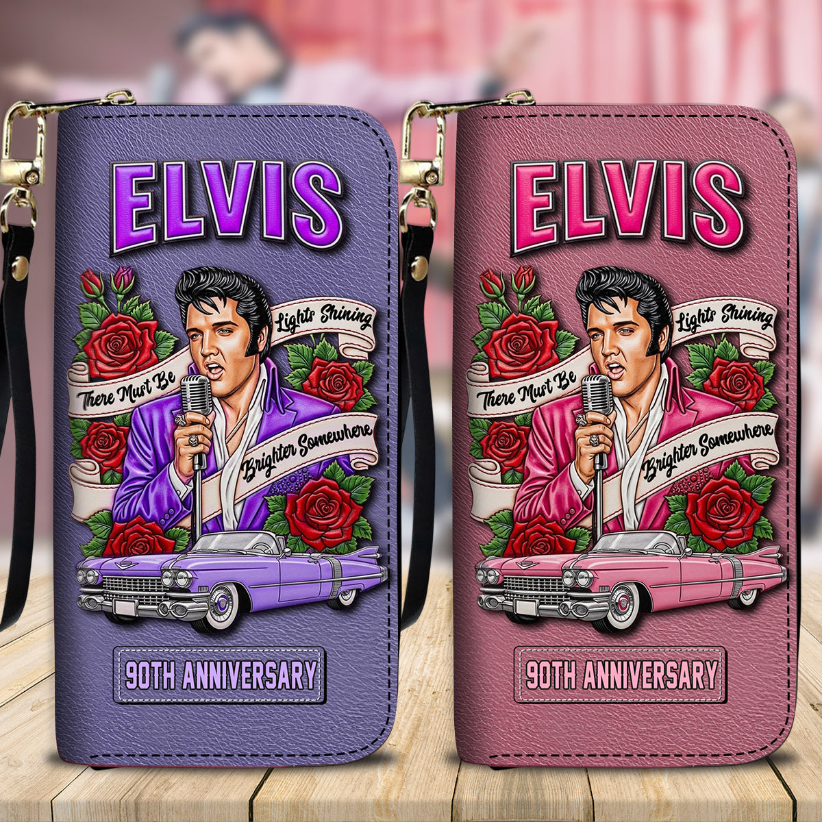 There Must Be Light Shinning Brighter Somewhere - Personalized King of Rock and Roll Leather Long Wallet