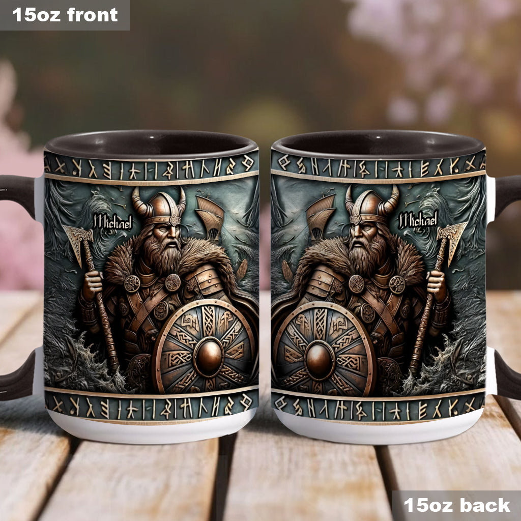 - High quality ceramic mug with two-tone rim, interior, & handle